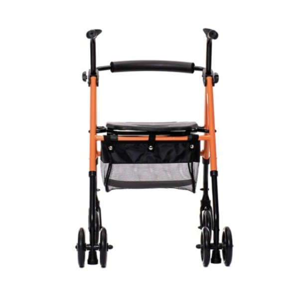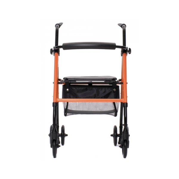 In opzione, sacca portaoggetti posizionata sotto al piano seduta, imbottitura per sedile per un maggiore comfort. Colore arancione.